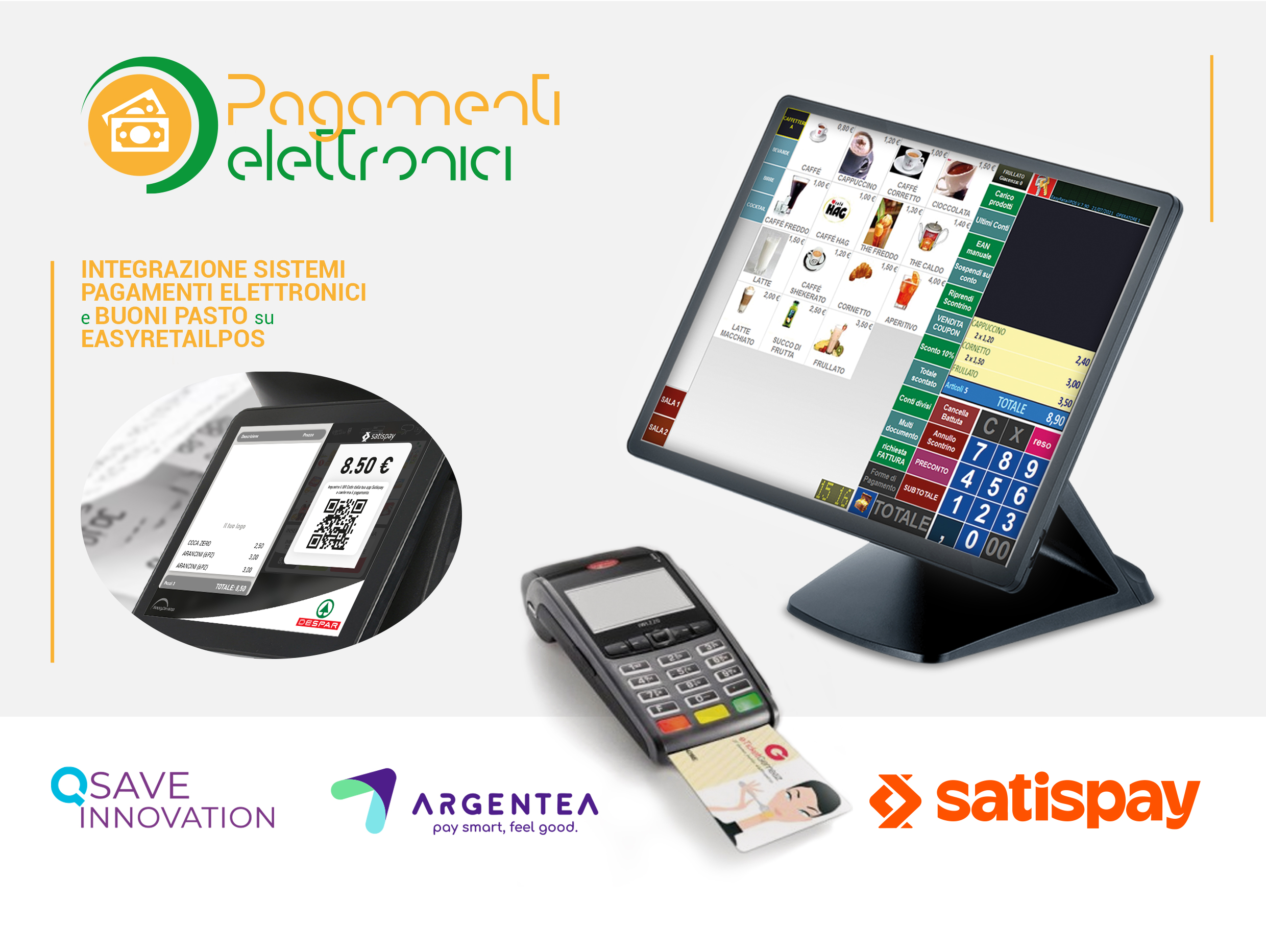 Attraverso l’intermediazione dei partner QSave o Argentea (la cui sottoscrizione dei servizi è richiesta separatamente), il sistema permette di centralizzare e automatizzare le operazioni di pagamento, garantendo compatibilità con i circuiti più diffusi e conformità alle normative vigenti in materia di transazioni di pagamento con buoni pasto.